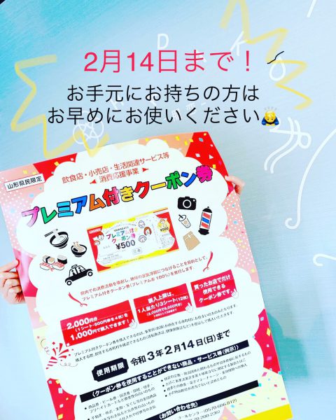 おしらせ 2021/01/25 プレミアム付きクーポン券…お持ちですか? 去年販売いたしました プレミアム付きクーポン券! 使用期限が近づいてきております! 2月14日までしかお使い頂けません。 お手元に残っていないか お確かめください😊 お手元にお持ちの方は お早めにご利用ください🙇♂️ 今月いっぱい 新春キャンペーンで 化粧品がお得にお買い求め頂けますので 是非ご検討ください! もちろんコースでのご利用も可能です🤗